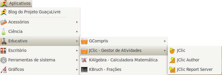 - Menu Aplicativos >> Educativo >> Jclic